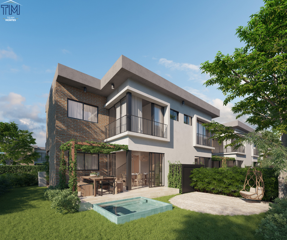 Comunidad cerrada con control de acceso, servicios soterrados, una extensión de 22,000 mts, 100 townhomes, 3 zonas, y varias áreas sociales.