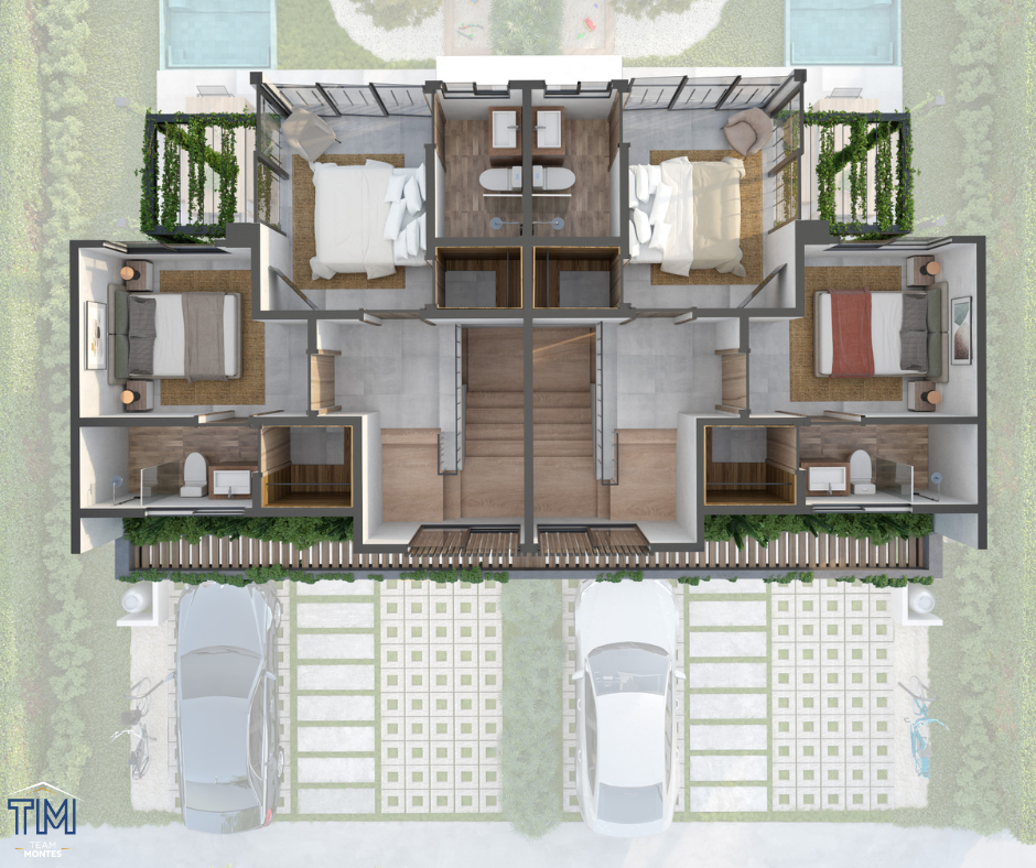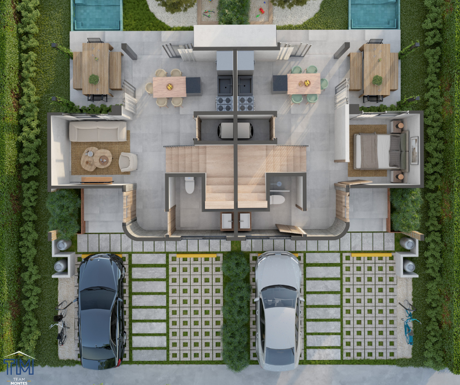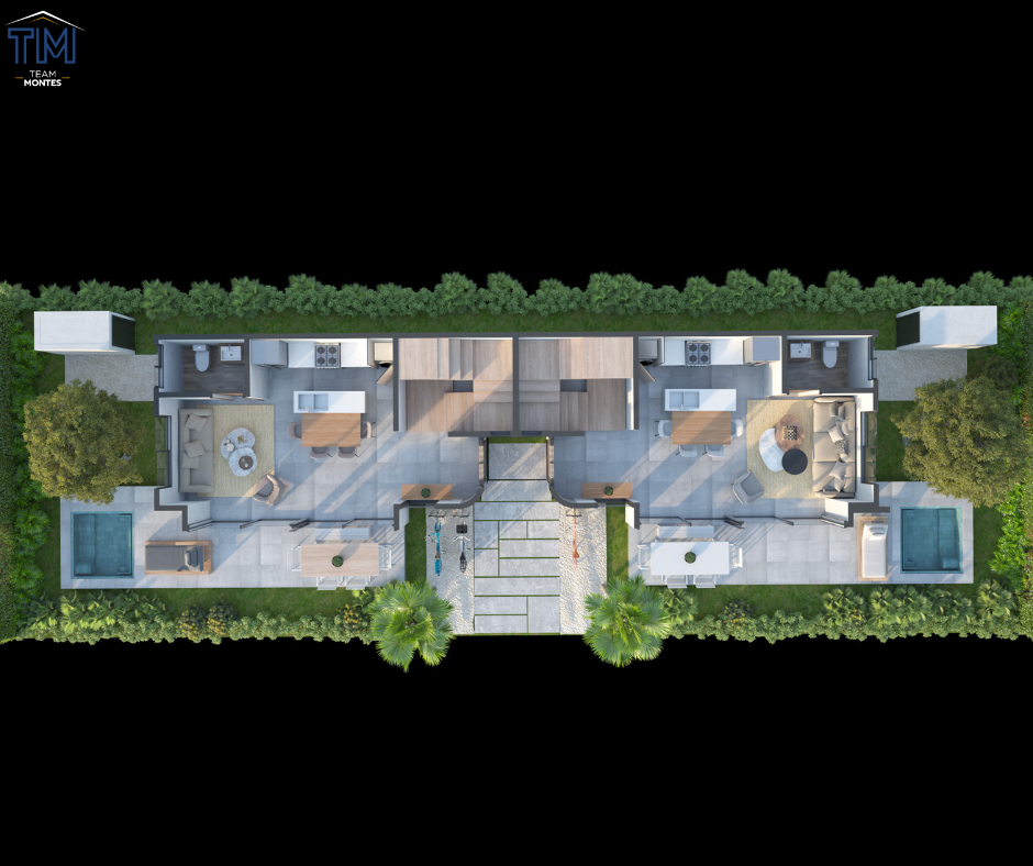 El paisajismo del entorno en estas villas duplex en Vista Cana juegan un importante rol para la conexión con la naturaleza, la mezcla de flora seca y plantas endémicas resaltan la calidez que brinda Punta Cana, combinándolo con el urbanismo, ofreciendo un disfrute total y experiencia inigualable.